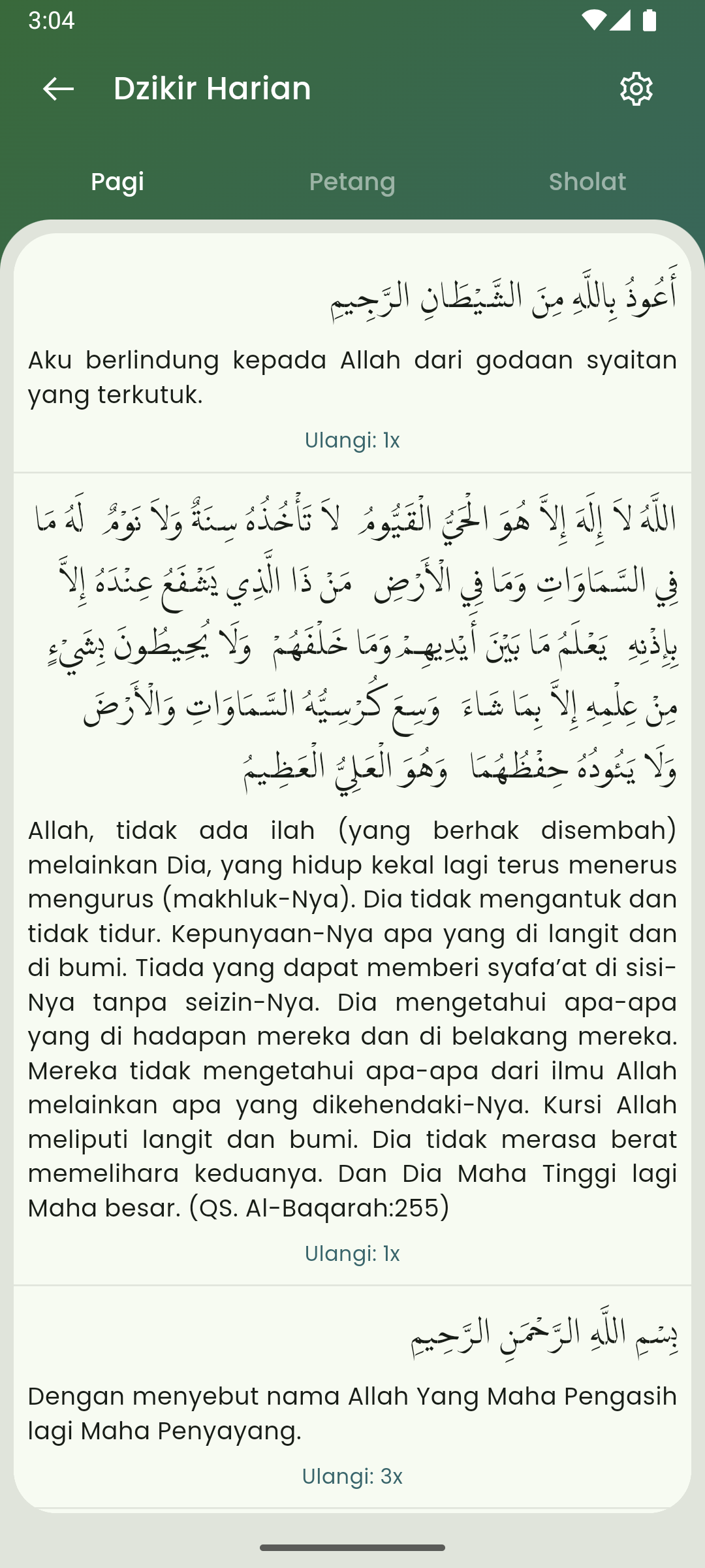 Bacaan dzikir harian (Pagi, Petang, Shalat), dari berbagai sumber di Google.