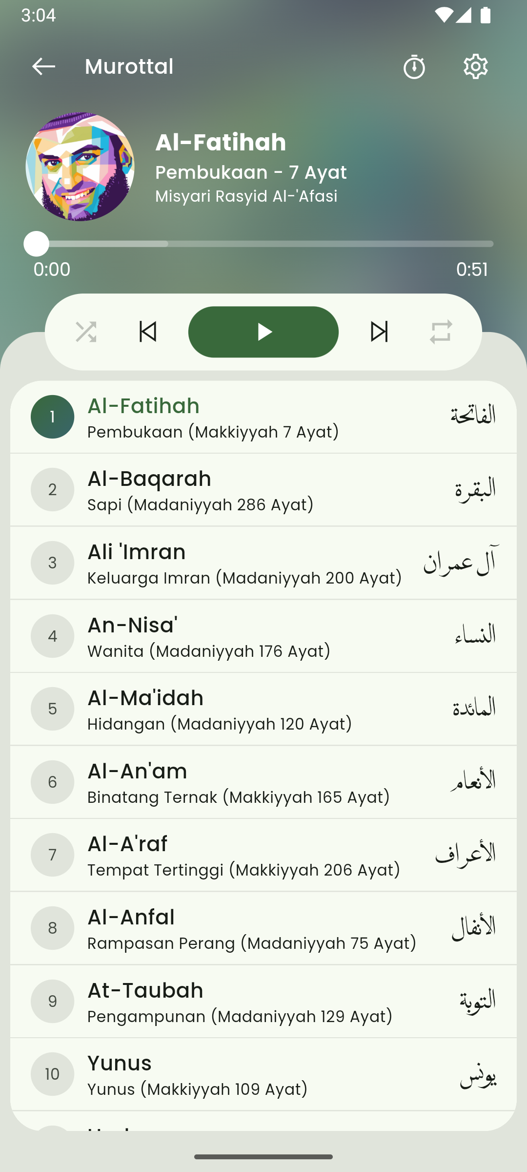 Audio murottal shaykh mishari alafasy, sumber audio dari QuranicAudio.