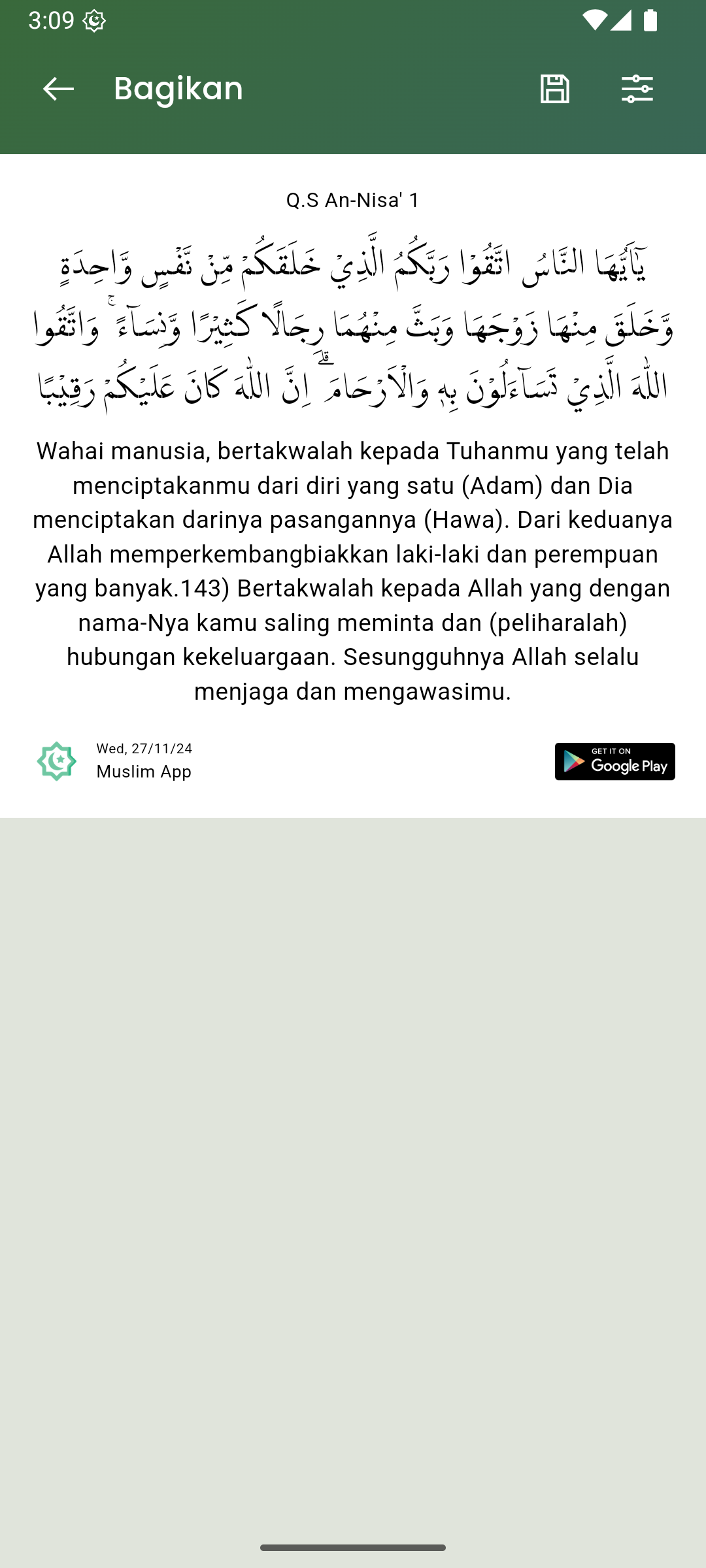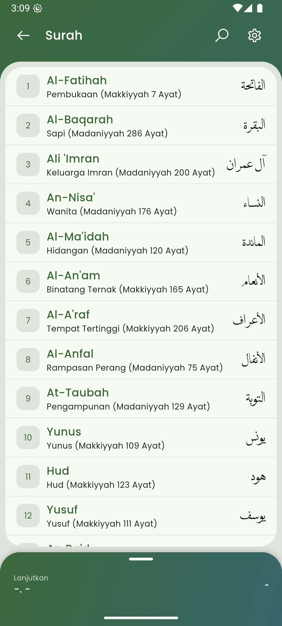 Al-quran lengkap 30 juz, dengan berbagai fitur. sumber Quran Kemenag.