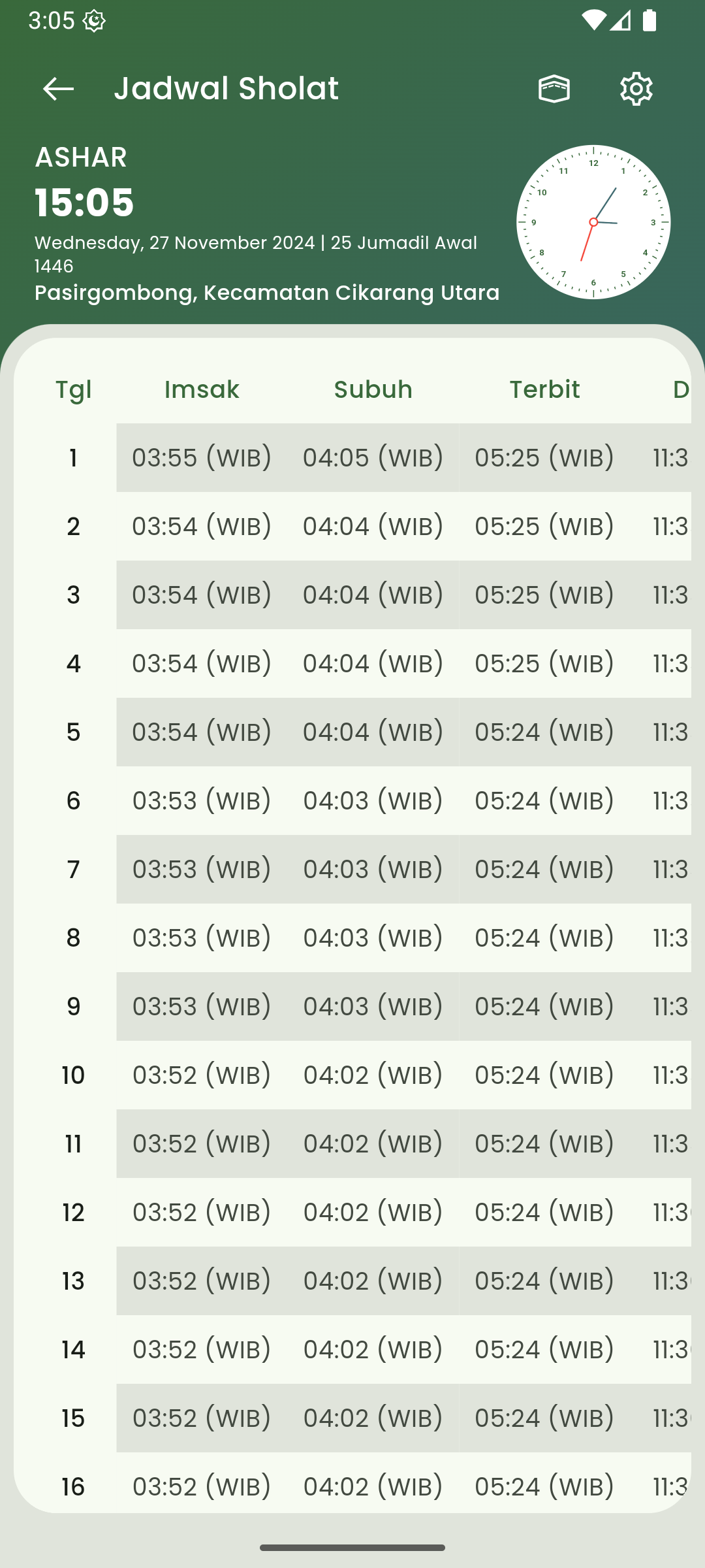 Jadwal sholat harian dan bulanan, sumber jadwal dari Aladhan.